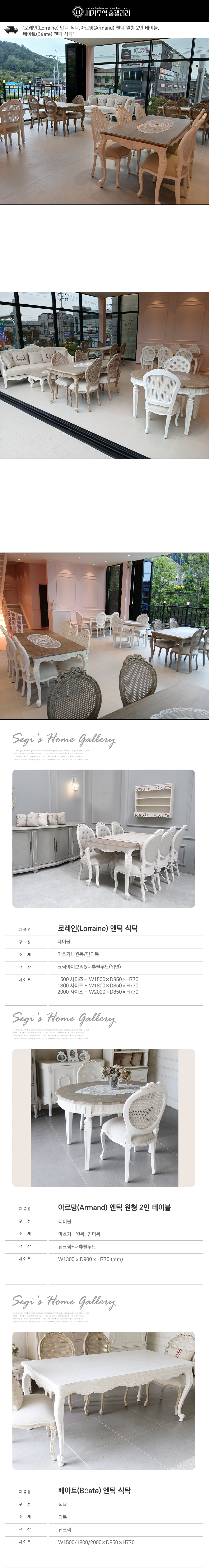 6034 로레인(Lorraine) 엔틱 식탁,아르망(Armand) 엔틱 원형 2인 테이블,베아트(Béate) 엔틱 식탁
